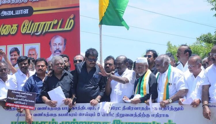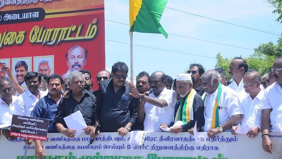டி மார்ட் நிறுவனத்திற்கு எதிராக மாபெரும் முற்றுகை போராட்டம்