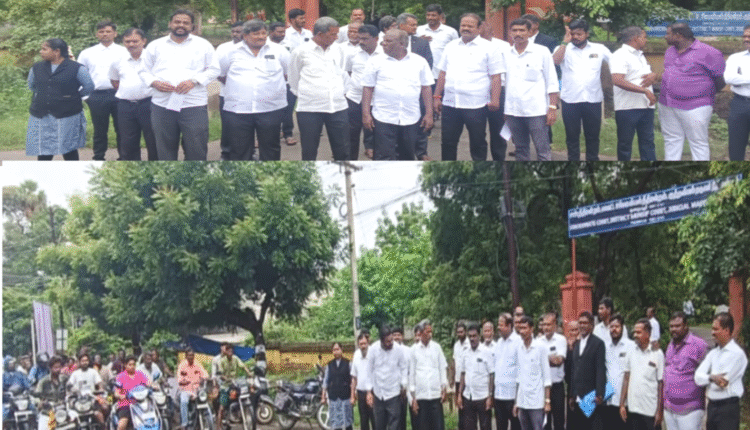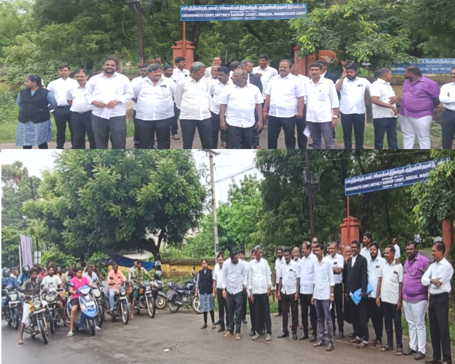 திருச்சி வழக்கறிஞர் சங்கத்தின் உறுப்பினர் அழகேஸ்வரன் கடந்த 19-10-25 அன்று தாக்கப்பட்டர். வழக்கறிஞர் தாக்கப்பட்டதை கண்டித்தும், வழக்கறிஞர் பாதுகாப்பு சட்டத்தை இயற்றிடவும் துறையூர் வழக்கறிஞர் சங்கத்தின் சார்பாக துறையூர் ஒருங்கினைந்த நீதிமன்றம் வாயில் முன்பு தலைவர் கார்த்திகேயன் செயலாளர் முஹம்மது ரபிக் துணைத் தலைவர் எஸ்பி பாஸ்கரன் செயற்குழு உறுப்பினர்கள் நிர்மல் குலாம் செல்வராஜ் மற்றும் மூத்த வழக்கறிஞர்கள் உத்திராபதி முத்துக்குமார் அத்தியப்பன் பாஸ்கரன் மலர் முகிலன் மற்றும் 50க்கும் மேற்பட்ட வழக்கறிஞர்கள் முன்னிலையில் 22-10-25 காலை 10 மணியளவில் கண்டன ஆர்ப்பாட்டம் நடைபெற்றது.