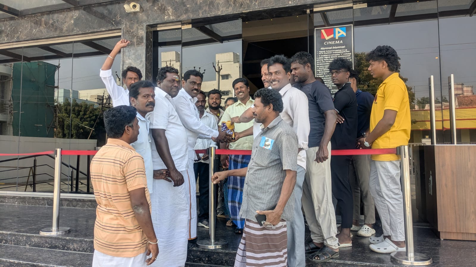 புரட்சி கலைஞர் கேப்டன் என மக்களால் அழைக்கப்படும் மறைந்த விஜயகாந்தின் இளைய மகன்  சண்முக பாண்டியன்  நடிப்பில் இன்று(19-12-25) வெளிவந்துள்ள “கொம்பு சீவி”என்ற தமிழ் திரைப்படம் உலகமெங்கும் வெளியாகி உள்ள நிலையில் திருச்சி வடக்கு மாவட்டம் துறையூர் திரையிங்கிலும் வெளியாகியுள்ளது.இதனை முன்னிட்டு தேமுதிக துறையூர் கிழக்கு ஒன்றியம் சார்பில் கிழக்கு ஒன்றிய செயலாளர் வழக்கறிஞர் நோட்ரி ப்ளிக் செல்லதுரை திரைப்படத்தை காணவந்த பொதுமக்களுக்களை வரவேற்று இனிப்புகள் வழங்கினார்.நிகழ்வில் மேற்கு ஒன்றியச்செயலாளர் சென்னை பிரியாணி சரவணன், நகரச்செயலாளர் இரா சங்கர், கிழக்கு ஒன்றிய பொருளாளர் கிருஷ்ணசாமி, மற்றும் கொத்தம்பட்டி குமார், நிர்வாகிகள் ஆகியோர்.